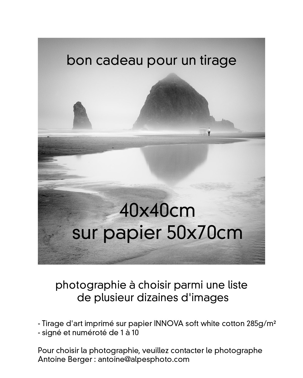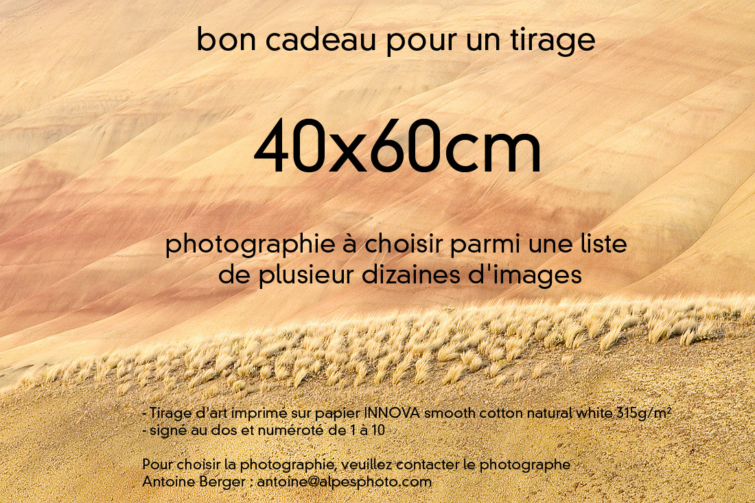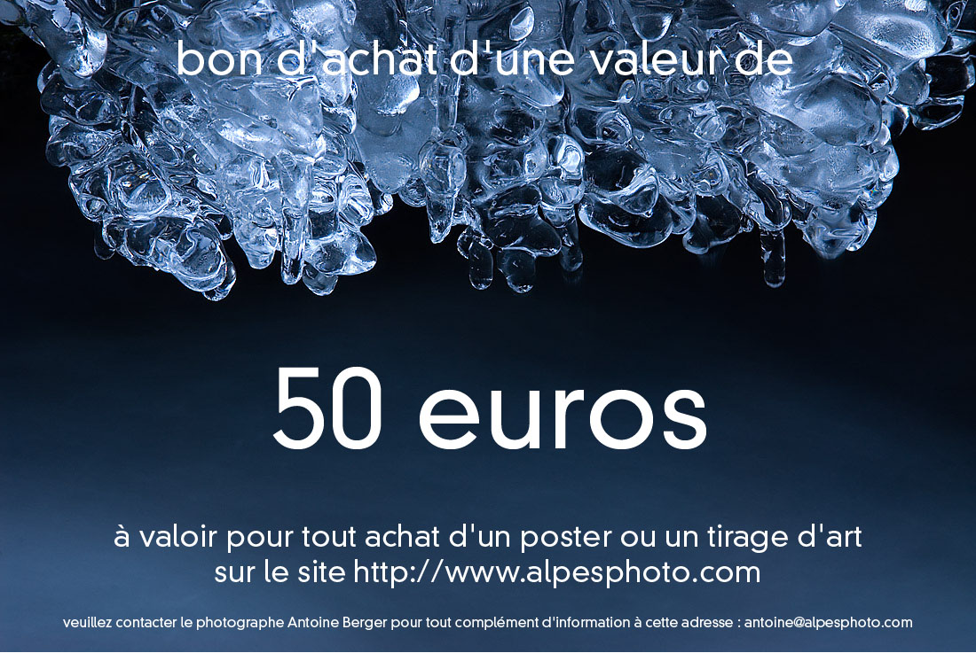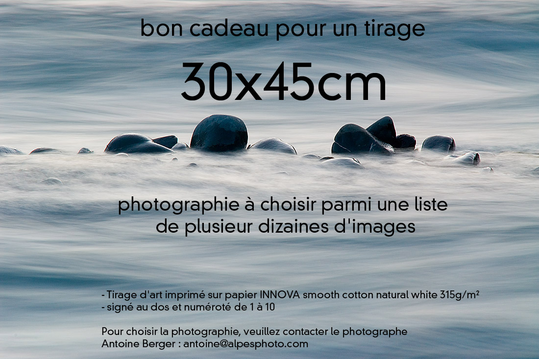 lui même le bon produit (tirage ou poster) et la bonne photo. Pour commander : Téléchargez directement le bon ci-dessous (cliquer sur les photos) que vous pouvez règler par carte bancaire ou en m'envoyant un chèque du montant du stage à cette adresse : Antoine Berger, La Côte, 74470 Bellevaux. Noubliez pas d'y inclure vos coordonnées et le nom de la personne qui bénéficiera du bon d'achat pour que je puisse l'ajouter à ma liste !
